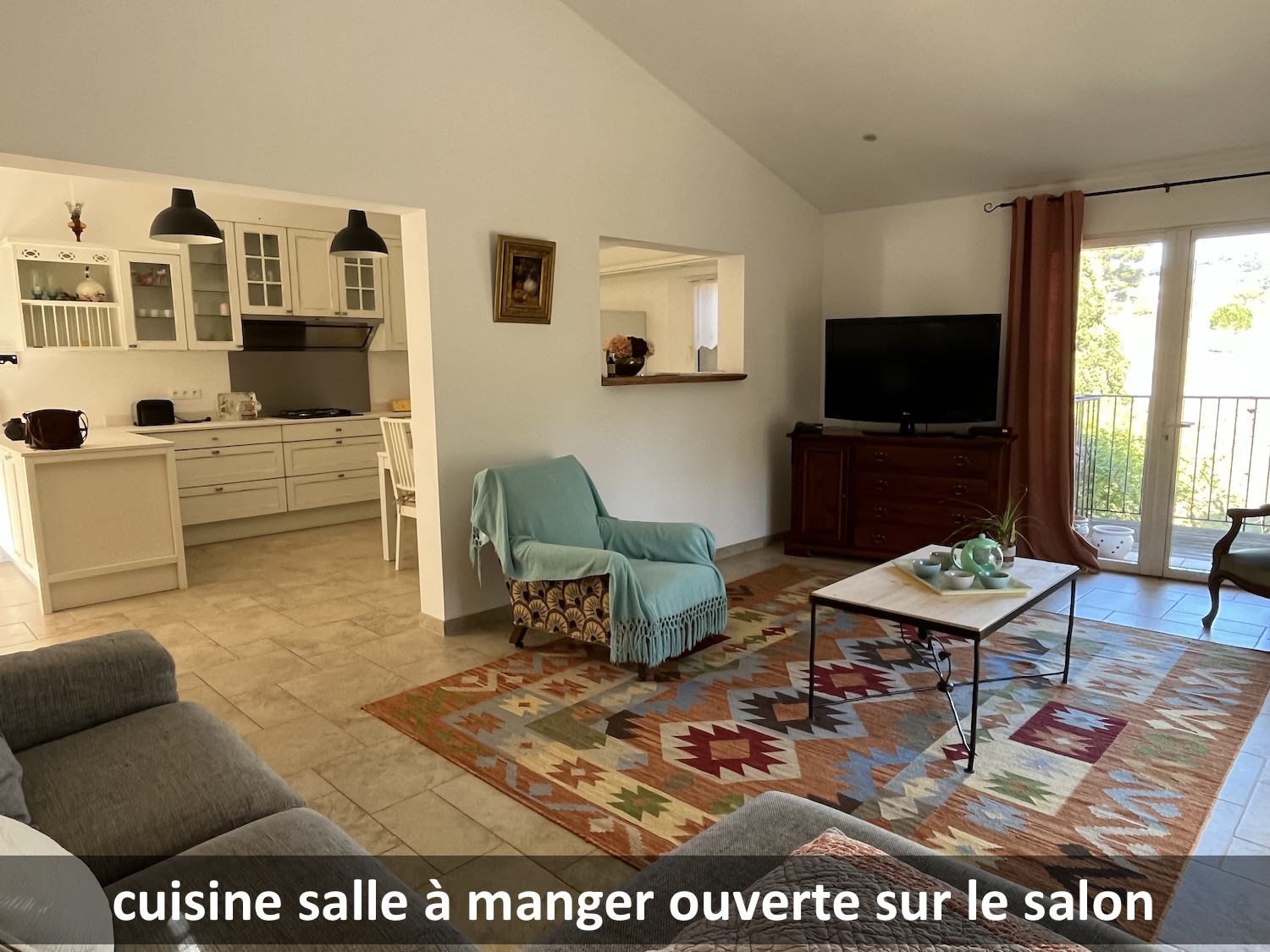 Vous disposez d’un séjour climatisé avec télévision et une cuisine américaine entièrement équipée.